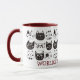 Diese Tasse hat ein Muster niedlicher Cartoon-Gesichter in Schwarz-Weiß. Unten steht der rote Sprichwort "Die beste Katze-Mama der Welt". Perfekt für den Muttertag oder zu jeder Zeit! *Dank an Soul Cliparts World für die Bilder in diesem Design.