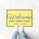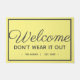 Mit diesem personalisierten Willkommensdesign heißen Sie Ihre Gäste herzlich willkommen. Das Design sieht aus wie eine einfache Begrüßungsmatte, bis man genau gelesen hat, dass es die Gäste davon abhält, ihren Besuch zu überbrücken. Wörter lesen "Willkommensgruß verschleiert nicht" mit Familienname und Datum darunter. Das Design zeichnet sich durch dunkelgraue Kalligraphie und moderne Schrift auf einem gelben Hintergrund aus. Eine weiße Grenze fasst die Buchstaben auf der Matte zusammen. Design von © Ms_Jade. Weitere lustige Designs in meinem Zazzle-Store unter www.zazzle.com/Ms_Jade* kaufen