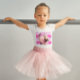 Ein hübsches Frettchen tanzt einen rosa Tutu und probiert ihr beim Tanzen des Balletts die Hand.
