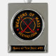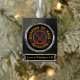 Ornament mit anpassbarem Textbanner. Bearbeiten Sie den Text im Feld rechts neben dem Design. Geben Sie Ihren Namen oder Ihre Nachricht ein! Ideal, um einen Namen und eine sportliche Trikotnummer für ein wirklich persönliches Geschenk für Ihre sportwahnsinnige Familie und Freunde. Rotes und orangefarbenes Design, mit dem Text Waffen der Massenvernichtung, mit gekreuzten Hockeyschlägern.
