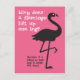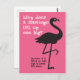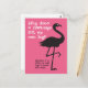 Das witzige Flamingo-Rätsel "Warum hebt ein Flamingo ein Bein auf?" macht Spaß für jeden, aber besonders lustig, es an Enkel oder Kinder zu schicken. Schwarze Flamingo Silhouette Illustration auf einem hellrosa Hintergrund mit einem lustigen Schriftart.