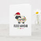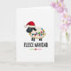 The sheep's face is dark with big, kind eyes, making it seem very warm and inviting. Below the sheep is the words "FLEECE NAVIDAD" in bold black letters, a funny play on words mixing the sheep's fluffy coat with a festive greeting. There are also a few colored dots and lines underneath, matching the Christmas colors. Overall, the design is simple and playful, perfect for sending cheerful holiday wishes to friends and family. It's a great way to spread some holiday joy! 🎅🏼🎄🎁