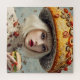 Eine lustige Frau mit einem Pilz-Sandwich-Hut und einem Sandwich in ihren Händen AI generierte Kunst