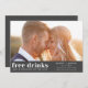 Speichern Sie die Dattelkarten in einem modernen Foto mit einem lustigen Textdesign, das "Freie Getränke und eine Hochzeit auf der Seite" lautet. Ideal für das lustige Paar, das nicht auf ihre Hochzeit warten kann.