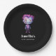 Papier Teller mit einer niedlichen Abbildung. Frankensteinmonster mit rosa und lila Haar und einem dapper Anzug und Krawatte.