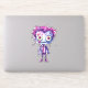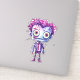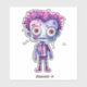 Kontrahieren Sie den Aufkleber mit einer niedlichen Abbildung. Frankensteinmonster mit rosa und lila Haar und einem dapper Anzug und Krawatte.