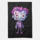 Küchenhandtuch mit einer niedlichen Abbildung. Frankensteinmonster mit rosa und lila Haar und einem dapper Anzug und Krawatte.