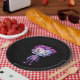 Papier Teller mit einer niedlichen Abbildung. Frankensteinmonster mit rosa und lila Haar und einem dapper Anzug und Krawatte.