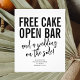 Funny Zitat Free Cake Open Bar und eine Hochzeit auf der Seite.