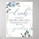 Dusty Blue Floral zu Ihrem Hochzeitsthema, Funny Open Bar Signage für Ihren Empfang - Die Getränke von heute Abend sind kostenlos, Geschichten von morgen werden unbezahlbar! . Aquarellfarbene Rose, Blätter und Beeren in modernem schick staubblauem Blau umgeben einen geometrischen Rahmen im Terrarienstil mit Salbeigrün. Anpassen von Text, Schriftart, Farbe und Größe. Original-Kunstwerk für die BarefootBride™ erstellt von © WhimsicalArtwork™ - Dies ist Teil einer kompletten Hochzeitsgeschosse-Suite mit passender Hochzeit, Babydusche und anderer Veranstaltungsbühne.