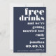 Ein lustiges, mutiges typografisches Design, um Ihre Gäste zu einem rett Ihres Hochzeitsdatums einzuladen. Vollständig anpassbar. Die Typografie ist alle rechts ausgerichtet, mit weißer Typografie an der Spitze, kostenlose Getränke, gefolgt von Und Wir werden verheiratet zu in weiß, mit Ihren Namen, Hochzeitstag und Lage in einer Mischung aus Gold und Weiß. Auf der Rückseite befindet sich ein marinebasierter und weißer Streifen.