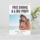 Modern foto "Free drinks & a big party (and we're getting married) design in black and white is customized with your foto, names, wedding date and location. Add your return address and wedding details to the backside of the postcard. Kontakt mit mir through the button below if you need help or have a custom request.