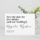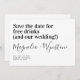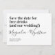 Lass deinen Freunden und der Familie, dass du ein Date mit dieser lustigen Save the Date-Karte hast - der Text lautet: "Save the Date für kostenlose Getränke (und unsere Hochzeit!)"