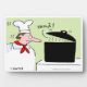 Funny French Koch Cooking Cartoon Desk Plaque ist für den Koch, der sich selbst ein wenig in der Küche fantasiert, vielleicht besonders wenn es um Gourmet-Küche geht. In diesem Toon ist er überrascht von der Lebhaftigkeit seiner kullinarischen Schöpfung, wenn der große schwarze Wasserkocher auf dem Ofen ließ ihm zu wissen, dass es den Punkt der Perfektion erreicht hat.