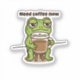 Funny frog meme showing a caffeine-addicted frog struggling to start the day. Perfect for coffee lovers and animal humor fans. Works great on t-shirts, mugs, stickers, and phone cases. Expressive, playful, and hilarious!frog, funny frog, meme, cartoon, coffee, sticker, t-shirt, mug, phone case, cute, humorous, expressive, POD, playful