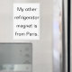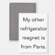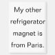 A fun take on the classic bumper sticker lets people know you don't cotton to fancy stuff up in your house. In fact, you can pose with the best of them. This funny addition to your kitchen decor says, "My other refrigerator magnet is from Paris" and makes the excuse that really doesn't need to be made. Why travel around the world when you can just imply that you have?