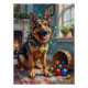 Funny German Shepherd Tangled in Christmas Lights Poster