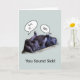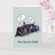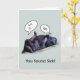 Eine lustige, wohlklingende Karte mit einem Foto von zwei schlafenden Gorillas, die sich im Zoo zusammenkuschelten. Ein Gorilla hat seine Füße auf dem Bauch des anderen ruhen. An der Front steht: Du klingst krank! Cartoon Wortblasen: Grr, krank. ...