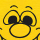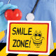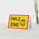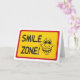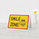 Lächeln Sie und ermutigen Sie, mit dieser ansteckenden, glücklichen Karte bald wieder gesund zu werden. Die Lächelzone befindet sich in einem handgeschriebenen Schriftart mit einem fröhlichen Grinsen. Die Farben sind Chili Pepper, Deep Yellow, white und black. Digitales Bild von handgemalten Papier. Inside: bald wieder gut!