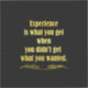 Ein motivierend Zitat in gelbem Text hebt sich vor einem schwarzen Hintergrund hervor und unterstreicht den Wert der Erfahrung, die aus unerfüllten Wünschen gewonnen wird. Verzierte dekorative Linien unterstreichen die folgende Meldung.