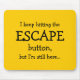 Dieses Mousepad hat den Text "Ich behielt auf den ESCAPE-Knopf zu drücken, aber ich bin noch immer hier.." Ja, es geht um den Zauberknopf, den wir uns von Zeit zu Zeit wünschen. Schade, dass es kaputt ist, wie es scheint..