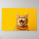 Funny Ginger Cat Yawning on Bright Yellow Backgrou Poster