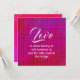 Valentinstag Card. Liebe in weißen Buchstaben auf rosa und roten Gingham aussehen. Witziges Sprichwort: Liebe muss nie jemandem sagen, dass er die Milch wieder in den Kühlschrank geben soll.