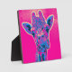 Eine lustige Pose aus einer niedlichen Giraffe - die Zunge raus! Funky fröhliche Neonfarben in Rosa und Blau. Fun 60er Jahre Retro Pop Art Stil.
