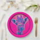 Eine lustige Pose aus einer niedlichen Giraffe - die Zunge raus! Funky fröhliche Neonfarben in Rosa und Blau. Fun 60er Jahre Retro Pop Art Stil.