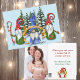 An der Vorderseite dieser flachen Holiday-Karte stehen drei lustige kleine Gnome, die dir ein frohes Weihnachtsfest wünschen. Das Zentrum-Gnome ist blau gekleidet und hat ein goldenes Banner mit rotem Text, das "Wir wünschen Ihnen ein frohes Weihnachtsfest" sagt. Auf beiden Seiten sind Gnome in Rot und Grün gekleidet. Hinter ihnen sind schneebedeckte Kiefern, und alles ist auf einem himmelblauen Hintergrund platziert. Auf der Rückseite der Karte befindet sich ein weiteres Bild eines Gnoms unten, benutzerdefinierte Textfelder für Ihre eigene Nachricht und Unterschrift und Ihr eigenes Foto. Hell, bunt und lustig!
