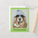Auf dieser Postkarte befindet sich ein goldener Retrivenhund, der als Detektiv mit einem Hahnenhut, einer Kostümpfeife und einer Sonnenbrille gekleidet ist. Der Text auf der Vorderseite sagt: "Das Rätsel ist gelöst!", während der hintere Text erklärt: "Du bist alt! Herzlichen Glückwunsch zum Geburtstag einer goldenen Oldie." Beides kann geändert oder gelöscht werden, um Ihre Bedürfnisse Anzug.