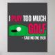 Funny Golf I Play Too Much Golf Said Ever Quote Poster