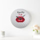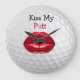 Funny Golf Wände Dekor Uhren mit humorvollem Sprichwort, das ist ein Spiel auf den Worten Kiss My Putt und Golfball Hintergrund. Entworfen als eine neue Uhr für eine männliche Höhle, Damen Badezimmer Neuheit, oder geben Sie dies dem Golf-Fanatiker, der glaubt, alles hat.
