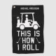 Dieses personalisierte Golfhandtuch zeigt einen Golfwagen und zwei Golfschläger, zusammen mit dem Text: "So rolle ich." Das Design ist ganz in Weiß auf schwarzem Hintergrund gehalten. Verwenden Sie die einfache Vorlage, um oben Ihren Namen oder anderen benutzerdefinierten Text hinzuzufügen. DESIGN TIPP: Passen Sie weiter an, um den schwarzen Hintergrund in jede beliebige Farbe zu verändern. Golfen Sie mit diesem humorvollen, personalisierten Handtuch stilvoll. Siehe dazu passende Produkte und mehr in unserem Shop https://www.zazzle.com/store/hobbyshirts