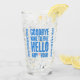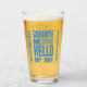 Feiern Sie den Ruhestand eines demnächst erscheinenden ehemaligen Mitarbeiters mit diesem lustigen Pint-Glas, das die Stimmung "Goodbye Nine to Five Hello Happy Hour" in einem weißen, grunge-artigen Schriftart mit einem Apfelmartini, der geschickt für das "Y" in "Happy" stehend ist. Umkehrung zeigt identisches Design. Design © W.H. Sim. Weitere Informationen unter zazzle.com/wordsofwhimsy