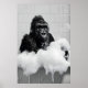 Funny Gorilla Bubble Bath Print, Bathroom Animal Poster