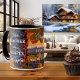 Farbenfrohe Tasse mit einer Landschaft bei Sonnenuntergang mit Trauben, nicht Äpfeln. Niedliches Spiel auf den ewigen Äpfeln für Lehrer. Gut als Geschenk für Lehrer. Auch schön als Weihnachtsgeschenk.