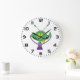 Keep track of time with a touch of cosmic humor using this funny green alien wall clock. This decorative timepiece features a goofy martian making a silly face, perfect for a kids bedroom or a playful office space. This whimsical character art clock adds a unique wacky extraterrestrial focal point to any wall.