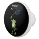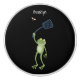 Dieser lustige grüne Frosch fängt mit einem Fliegenklatschen zu Mittag. Gezeichnet im albernen Cartoon-Illustrationsstil.