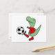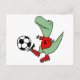 Funny Green T-rex Dinosaur Playing Soccer Postkarte