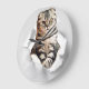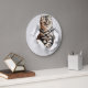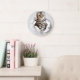 Funny Grey Cat Popping Through Torn Paper Illusion Große Wanduhr