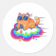 Funny Gym Cat Lifting Dumbbell on Rainbow Cloud Runder Aufkleber