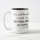 Funny und sonderbar Kaffee Tasse mit dem Text "Meine Kaffee-Tasse ist halb voll. Wer hat meinen Kaffee getrunken", zitierte paranoide Optimist.
