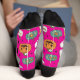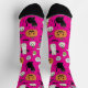 Kommen Sie mit diesen zauberhaften und festlichen Socken in den Halloween-Geist! Sie zeichnen sich durch ein skurriles, von Hand gezeichnet Muster verschiedener Katzen aus, die in Hexenhüten und Fledermausflügeln gekleidet sind, umgeben von Kürbissen, Jack-o'-Laternen, Mond und anderen skurrilen niedlichen Elementen wie Spinnennetzen und Tränke.