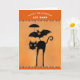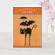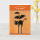 Kreative Halloween-Karte mit lustiger schwarzer Katze und einem Akrobaten mit Schirm. Fügen Sie Ihren Namen hinzu, um ihn zu personalisieren.