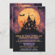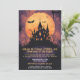 Die Einladung zeigt eine dramatische Halloween-Szene mit einem Spuk Haus, das in der Mitte sichtbar ist. Dieses unheimliche Haus mit seinen krümeligen Türmen und schattigen Fenstern hebt sich von einem lebhaften gelben Mond ab, der den Himmel beherrscht. Das geistreiche Glühen des Mondes wirft lange Schatten und beleuchtet das Spuk Haus, was ein Gefühl von Vorboten und Intrige schafft. Der Hintergrund ist reich, tief lila, in den Farbtönen von dunklen auf hellere Farbtöne verschoben und schafft eine geheimnisvolle Atmosphäre. Das lila ist mit subtilen Nebelklappen und winzigen, funkelnden Flecken vermischt, die dem Design eine ätherische, magische Qualität verleihen. Im Gegensatz zum hellgelben Mond sind hier mehrere Fledermäuse unterwegs, ihre dunklen Formen verleihen der Einladung ein Gefühl der Bewegung und tragen zum unheimlichen Charme der Einladung bei. Die Unterseite der Vorderseite bietet anpassbaren Raum für Veranstaltungsdetails, einschließlich Datum, Uhrzeit und Ort. Der Schriftart ist klar und gut lesbar, vielleicht in einer modernen Schrift, die die spielerische Beschriftung ergänzt. Die Textfarbe könnte ein hellerer gelber oder weißer Farbton sein, wodurch sichergestellt wird, dass er vor dem lila Hintergrund lesbar bleibt. Auf der Rückseite setzt das Spuk Haus- und Mondthema mit einer schwachen, geistreichen Version des Frontdesigns fort. Der Hintergrund bewahrt seine lila Farbtöne, Nebel und Glitzern sind leicht sichtbar, wodurch ein einheitlicher Look entsteht. Diese Seite enthält Platz für zusätzlichen Text, z. B. UAWG, spezielle Anweisungen oder skurrile Hinweise. Beispiele hierfür sind: "UAWG by [Date] to [Kontaktinformationen]" oder "Kostüme sind erwünscht; Überraschungen warten!" Der hier verwendete Schriftart passt zur Vorderseite, ist aber etwas kleiner und gedämpfter, mit Textfarben, die mit dem lila und gelben Thema für die Lesbarkeit harmonieren. Wenn kein zusätzlicher Text erforderlich ist, kann auf der Rückseite ein subtiles Designelement wie ein kleiner Geist oder Kürbis in die Ecke platziert werden, um visuelles Interesse zu erhalten. Die Einladung vereint unheimliche Elemente mit einer skurrilen Touch und schafft so die Bühne für ein Halloween-Fest voller Mysterium und Spannung.