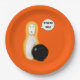 Funny Halloween Bowling Party Teller, mit einem lustigen Geist-Button und Bowlingball.