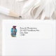 Adressieren Sie Etiketten mit einer Abbildung eines humorvollen Skeletts. Tragen Sie einen Tophut, halten Sie ein Getränk. Er hat ein großes Lächeln im Gesicht. Zu Halloween macht sich niedlich und spukhaft viel Spaß.