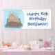 Unser glücklicher Walrus sitzt und sonnt sich auf einem Felsen im Ozean. Viel Spaß für einen walrusartigen Tag im Cartoon-Stil!