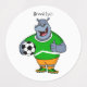 Funny Hippo Fußballspieler Cartoon Illustration Etiketten